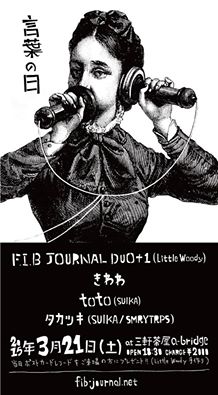 出演者 F.I.B JOURNAL DUO+1(Little Woody) きわわ toto(SUIKA) タカツキ(SUIKA / SMRYTRPS)